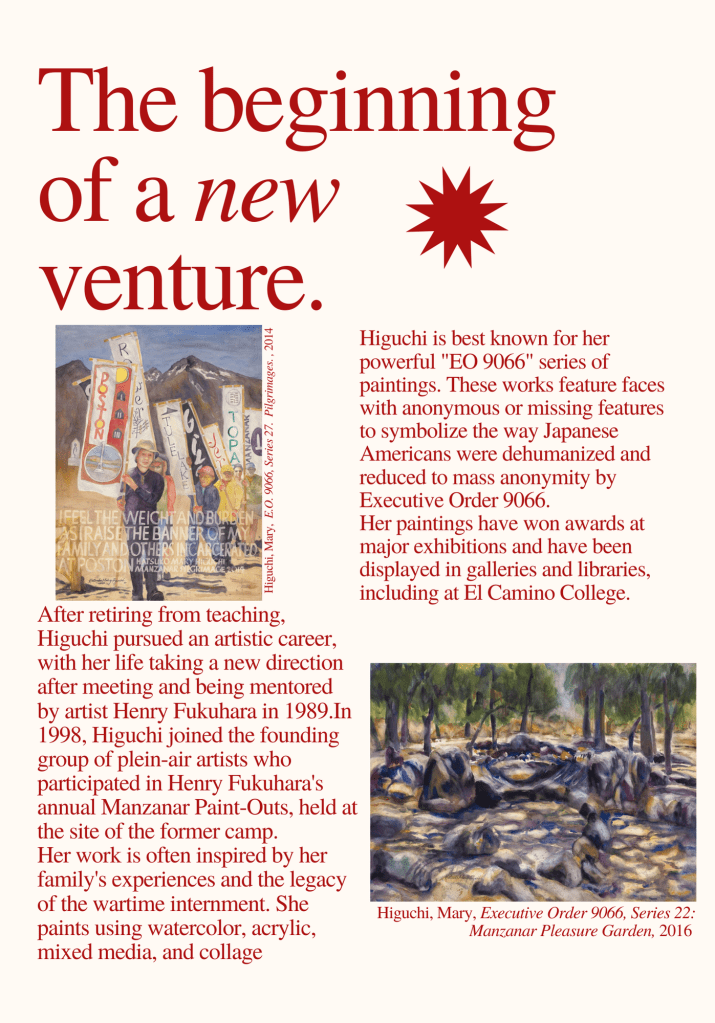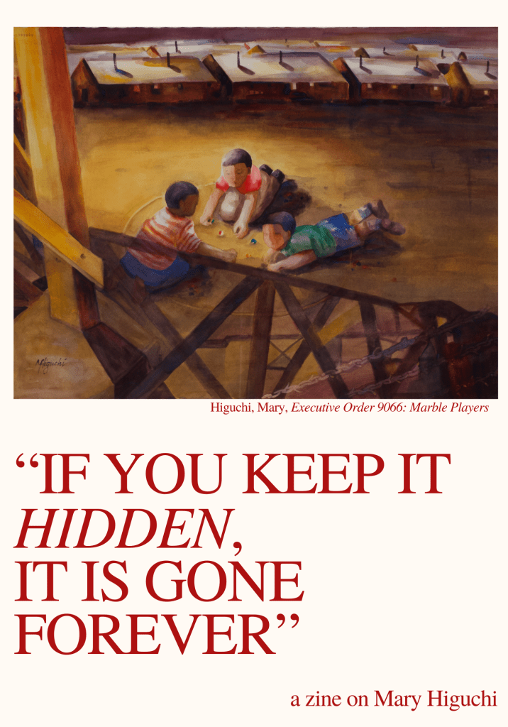 I had the honor to work on a zine for Mary Higuchi this semester. I wanted to share what I created, in hopes of highlighting the tragedies and loss felt in the wake of Executive Order 9066. Thank you Mrs. Higuchi for preserving and cementing your experience and those of many others into history.